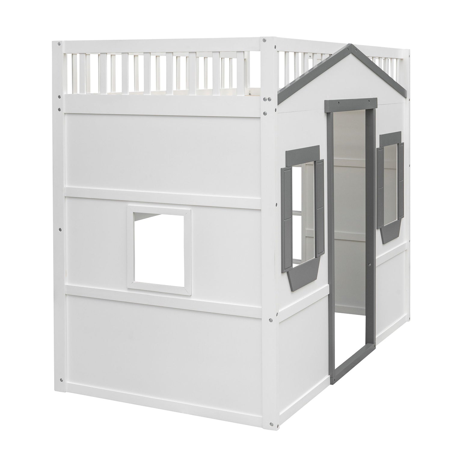 Full Size House Loft Bed With Ladder - Gray / White