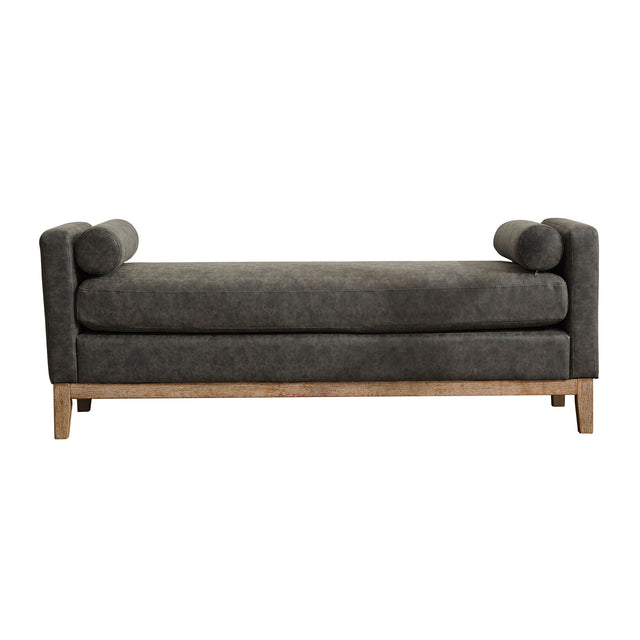 Elegant Upholstered Bench, Daybed, Ottman With Wood Legs & 2 Bolster Pillows For Bedroom, Living Room, Entryway - Gray