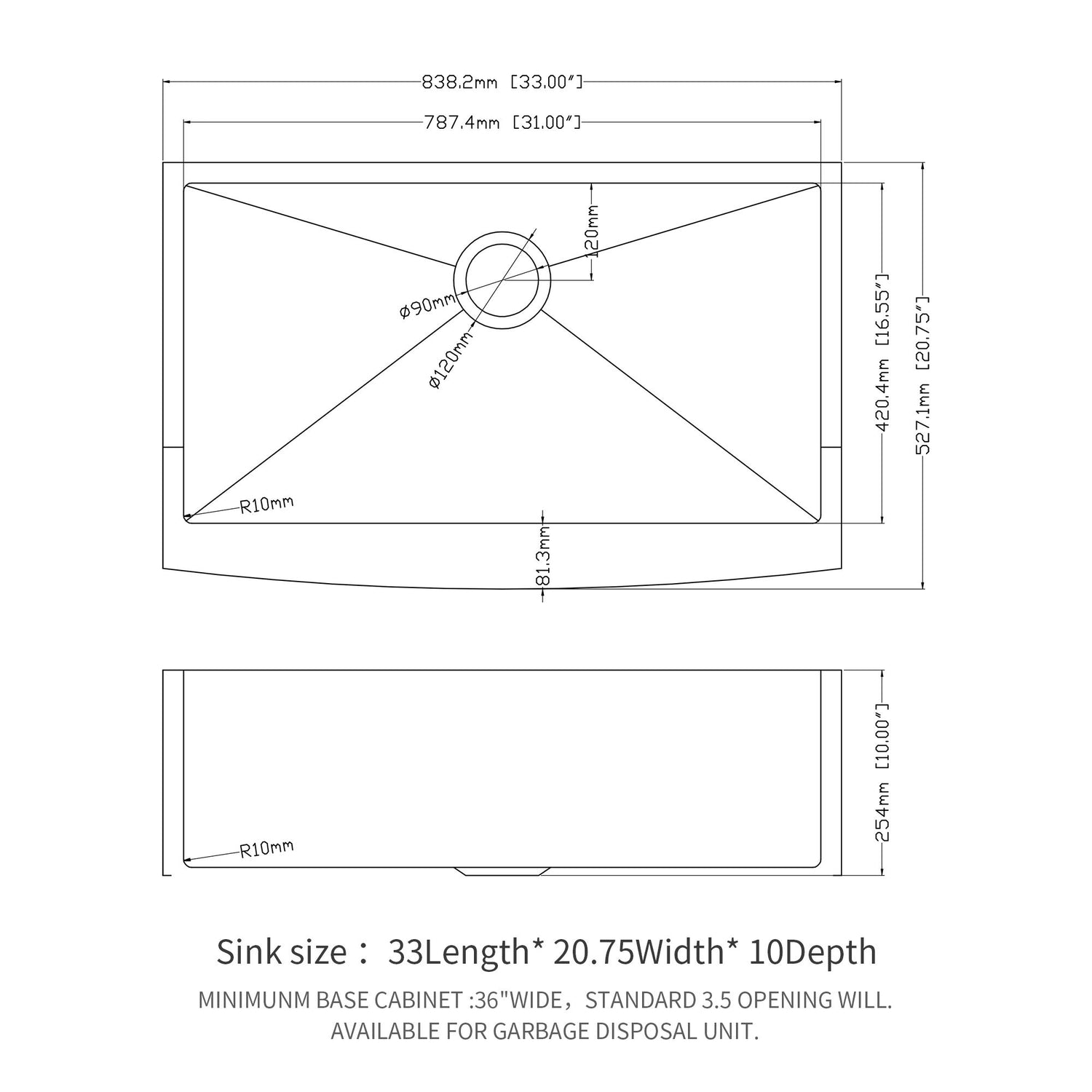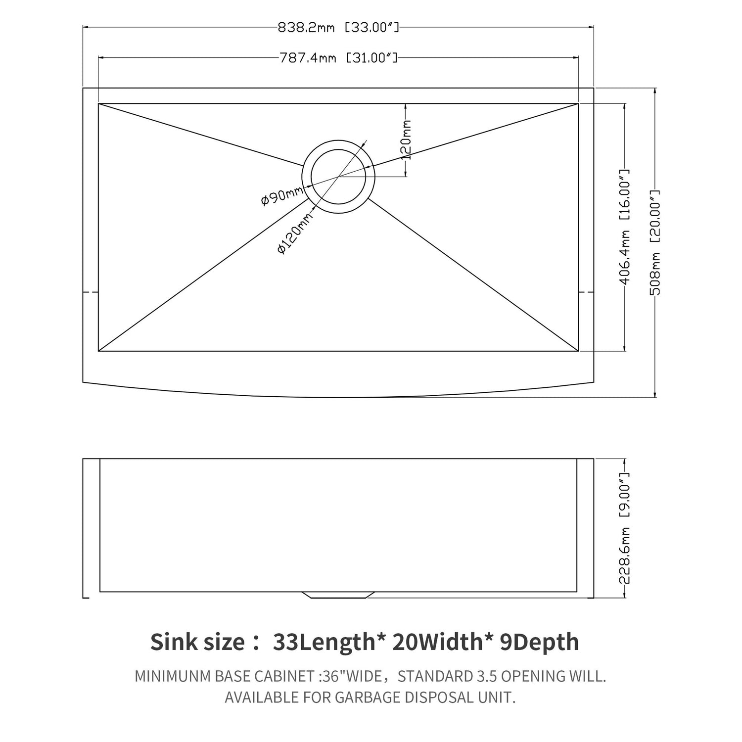 Farmhouse 33" Kitchen Sink Stainless Steel Apron Front 16 Gauge - Brushed Nickel