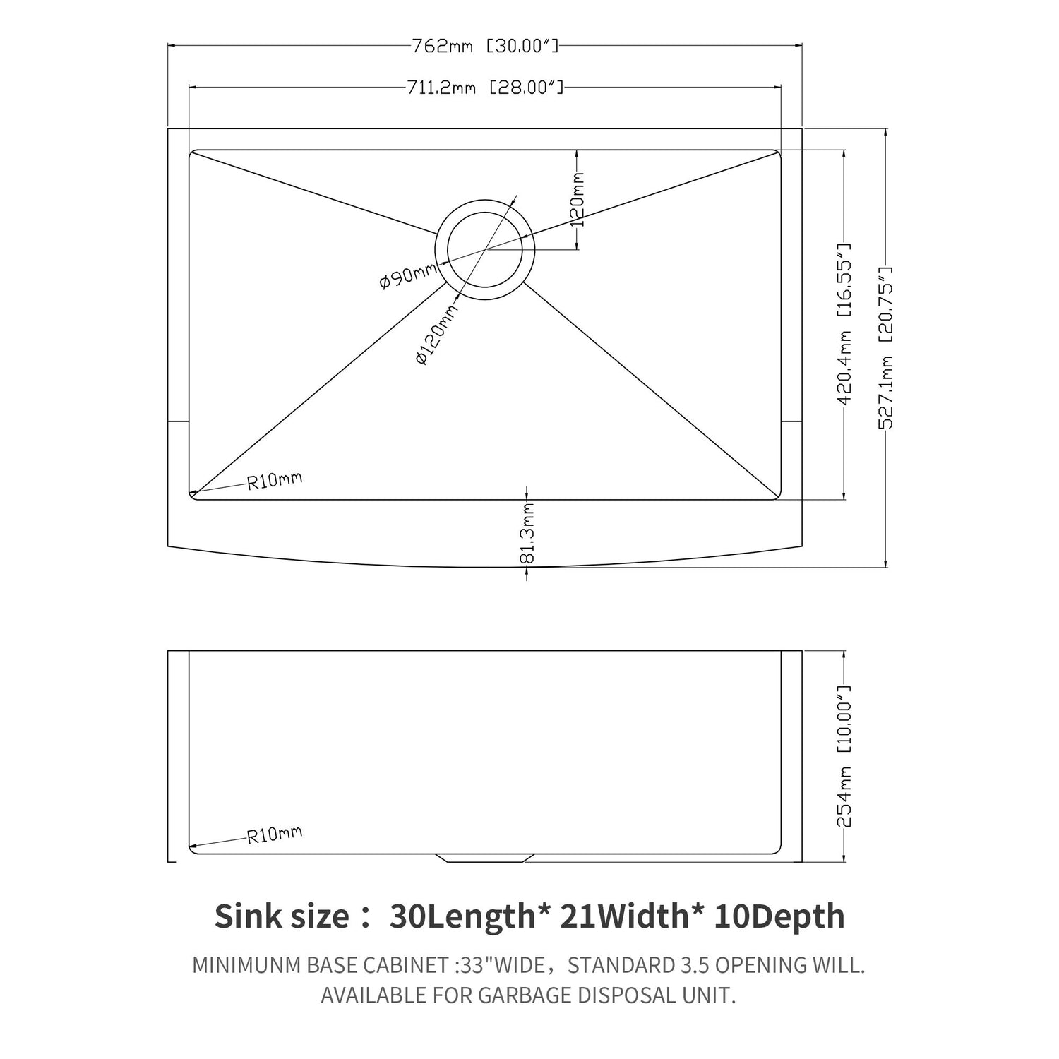 Farmhouse Kitchen Sink Stainless Steel Apron Front - Gray / 30"W x 21"D x 10"H is backordered and will ship as soon as it is back in stock.