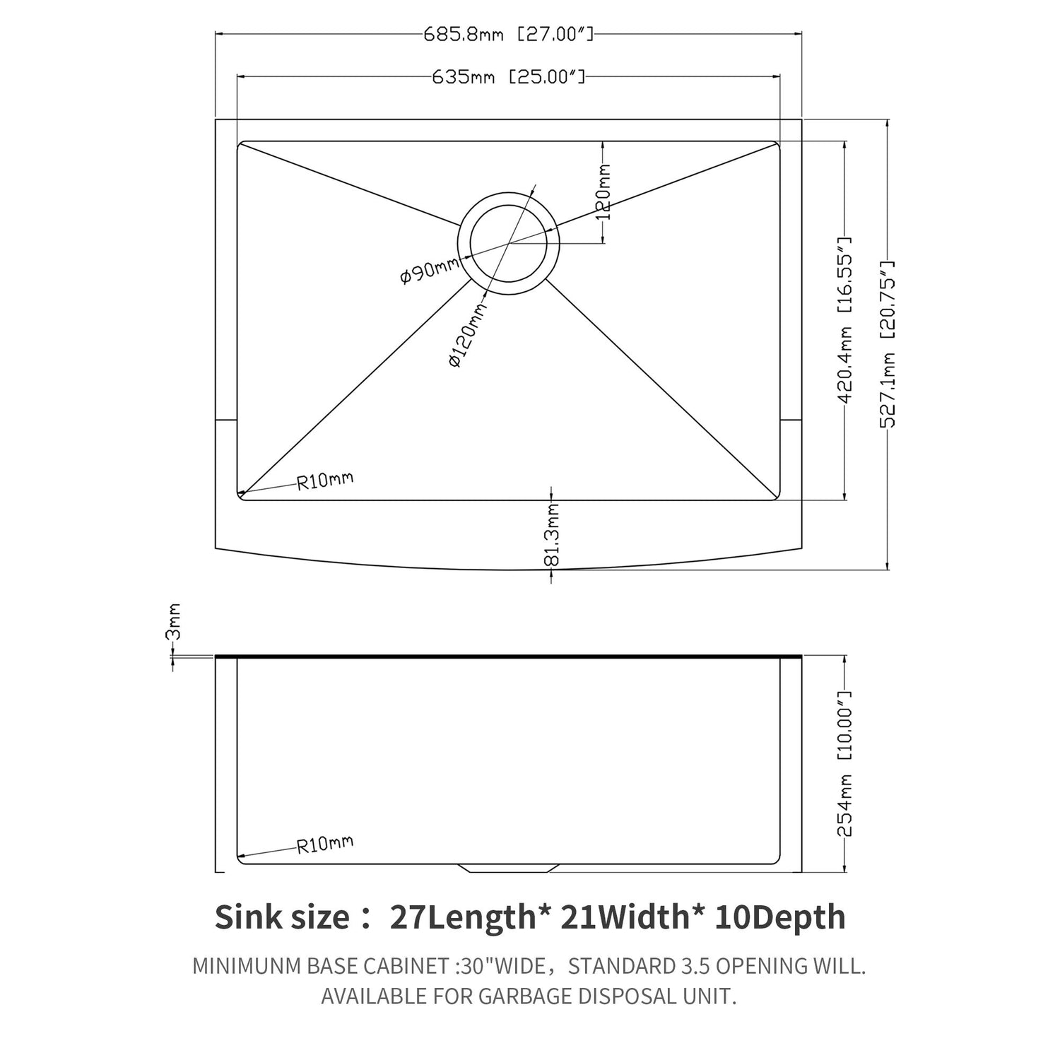 Farmhouse Kitchen Sink, Stainless Steel, Apron Front