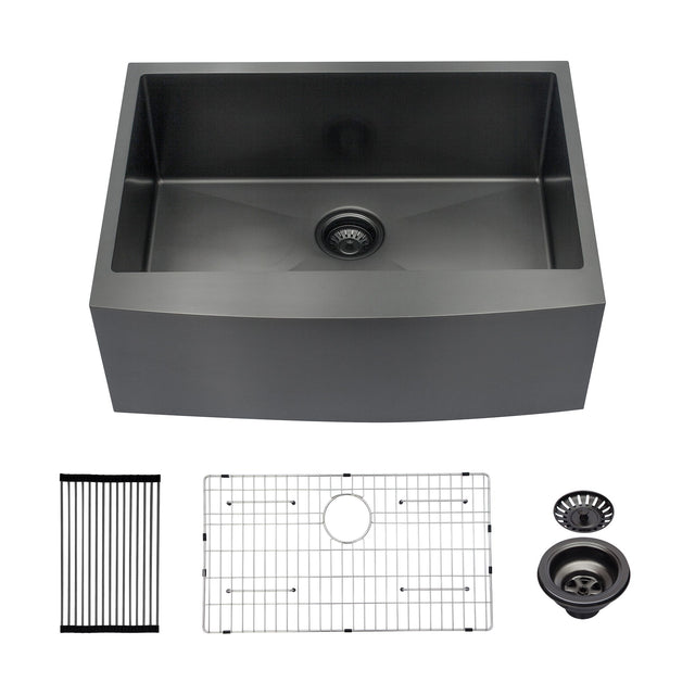 30" Farmhouse Kitchen Sink Stainless Steel Apron Front 16 Gauge 10" Deep Single Bowl - Gunmetal Black