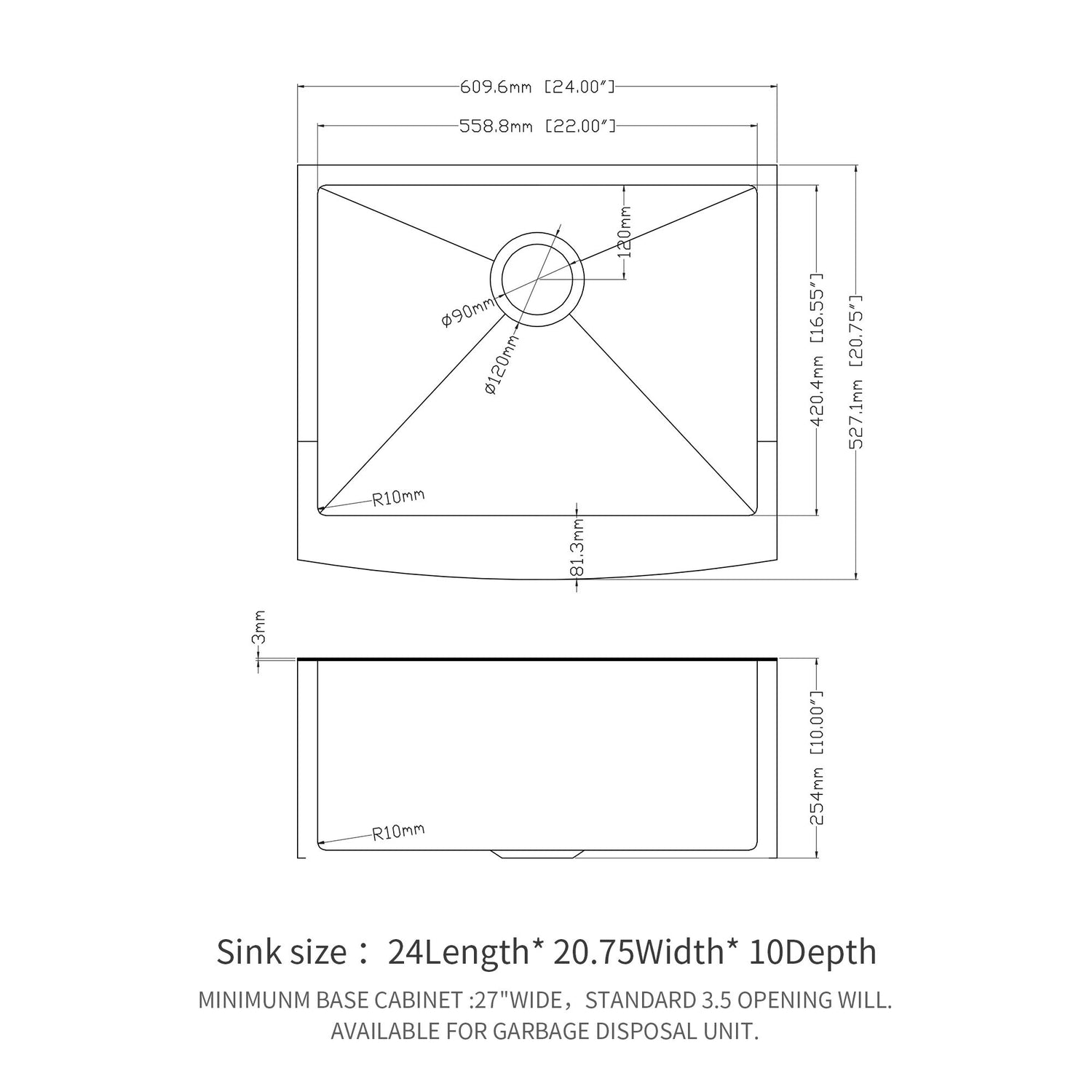 Farmhouse Sink 24" Stainless Steel Apron Front Kitchen Sink - Gunmetal Black