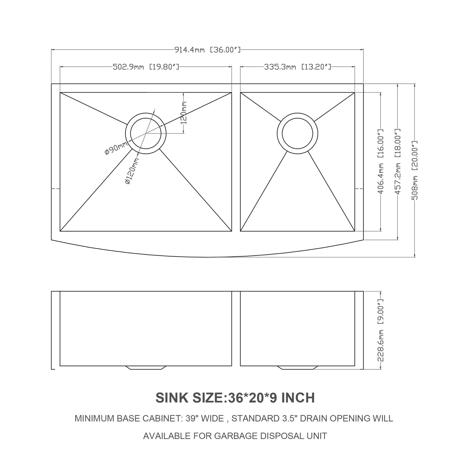 - Double Bowl Layout: Provides functional separation between large and small tasks, enhancing workflow efficiency