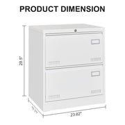 Filing Cabinet Lateral File Cabinet With Lock, 2 Drawer, For Legal / Letter / A4 / F4 Home Office - White