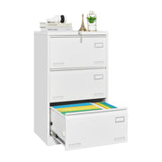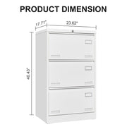 Filing Cabinet Lateral File Cabinet With Lock, 3 Drawer - White
