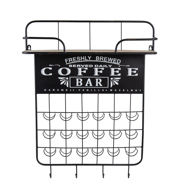 - Multi-Functional Design: This coffee bar shelf features 18 slings for k-cups or coffee pods, four hooks for mugs and cups, and a spacious shelf for storing syrup, sugar, creamer, and a grinder, combining style and functionality.