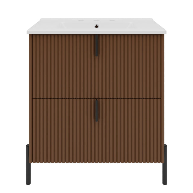 Fluted Bathroom Vanity With Sink, Freestanding Design, Vertical Pulls - Dark Brown