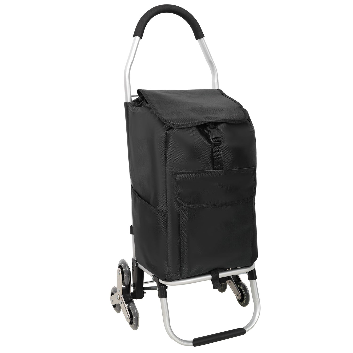 Foldable Shopping Stair Trolley With Triangular Wheels And Removable Waterproof Bag - Black