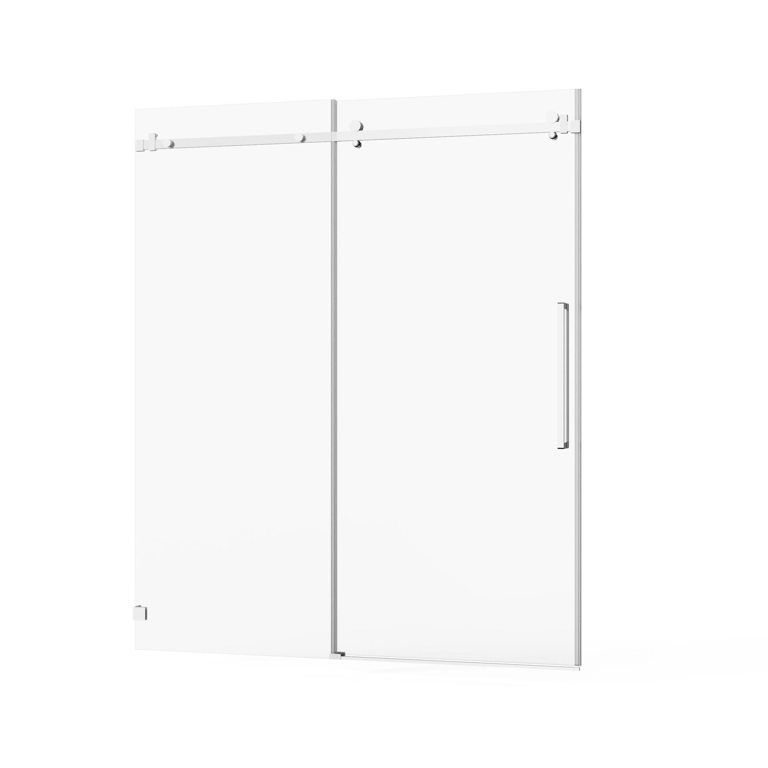 Frameless Shower Door, Sleek Silent Sliding Glass Door, Tempered Glass, 48" X 72" - Chrome