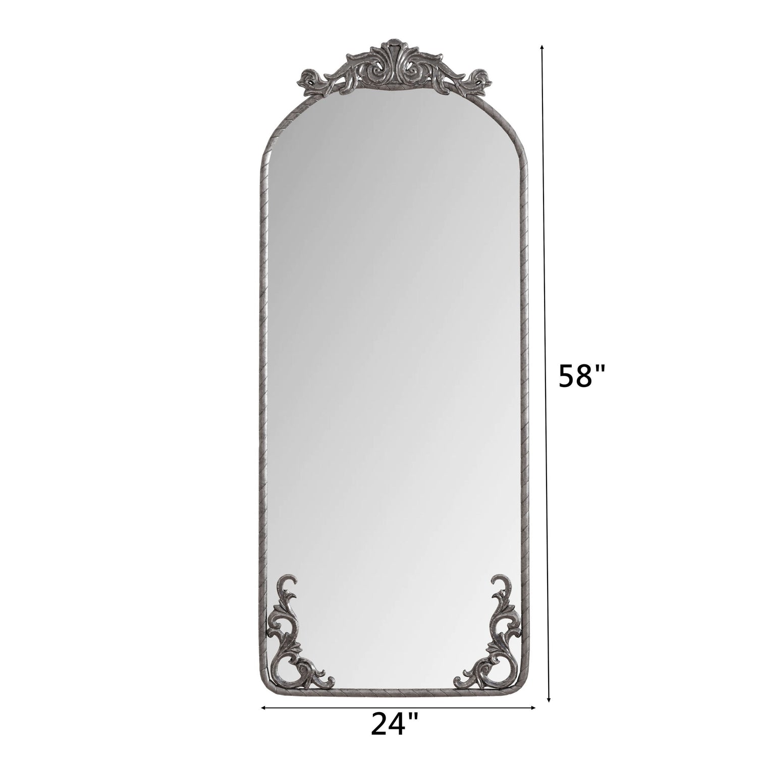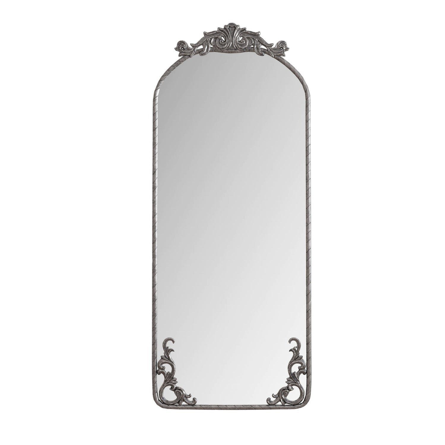 Arched Full Body Mirror With Vintage Carved Applique - Antique Silver