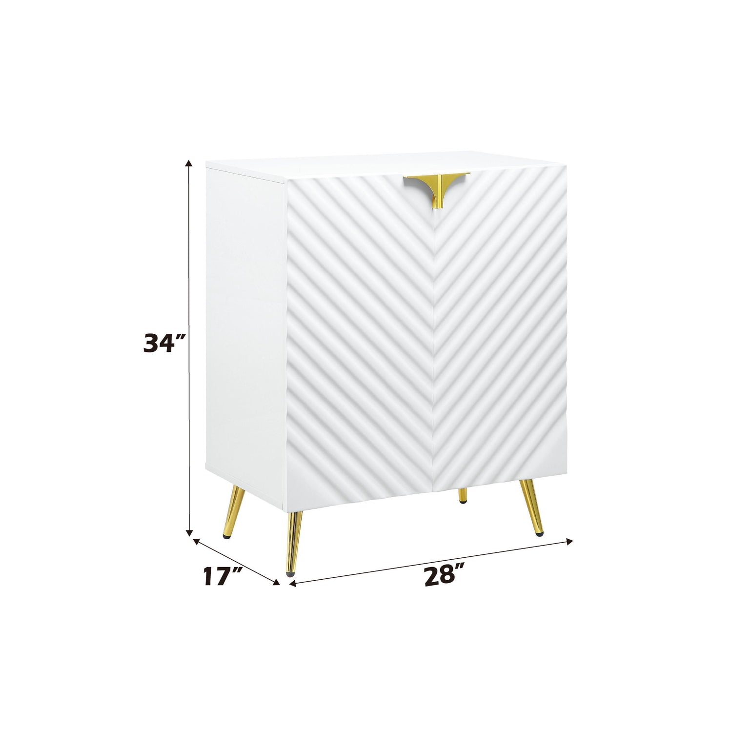 - Elegant Design: The Gaines White High Gloss Finish Console Cabinet features a sleek wave pattern design with a fully KD structure, providing a modern and sophisticated look.