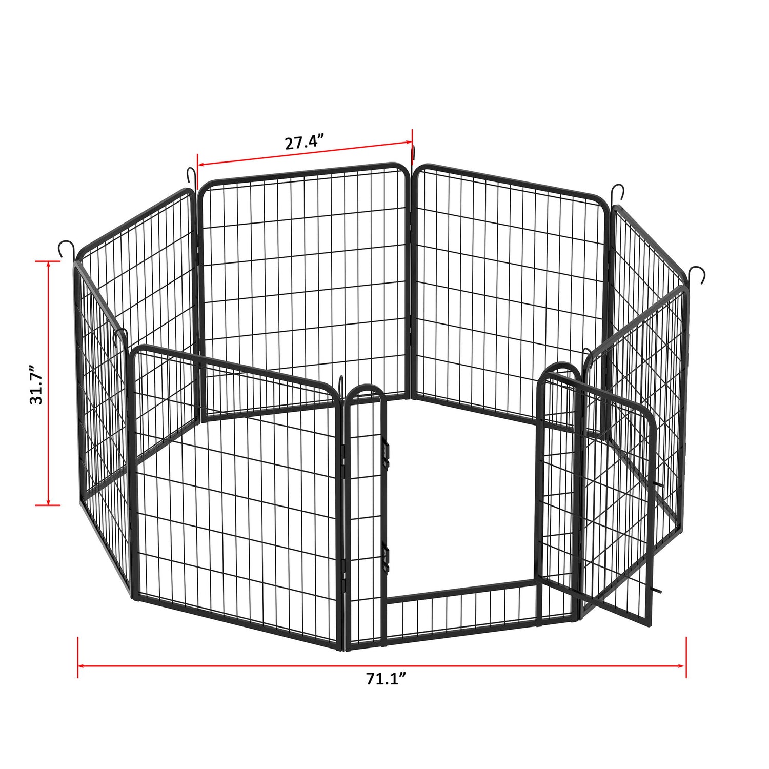 53.94" 8 Panels Heavy Duty Metal Playpen With Door, Dog Fence Pet Exercise Pen For Outdoor, Indoor - Black