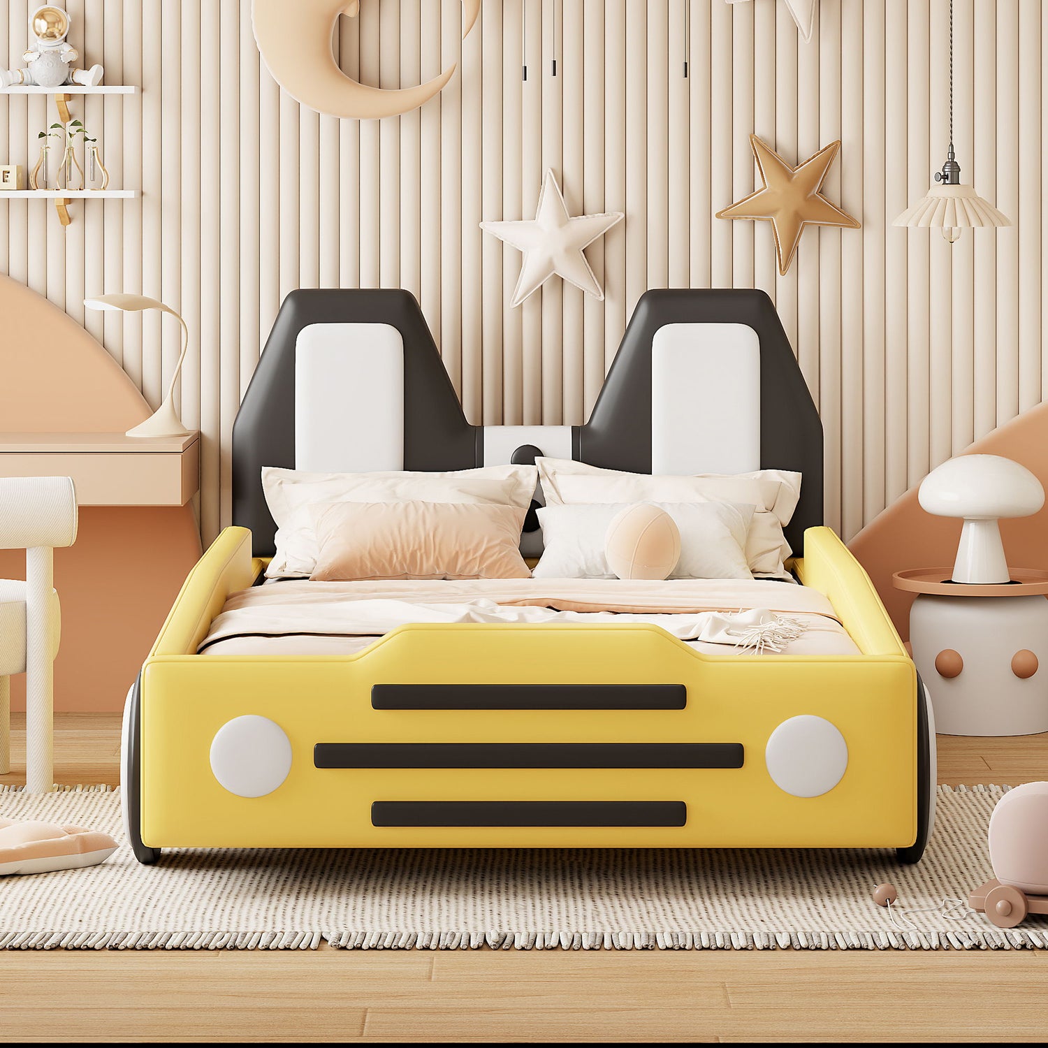Twin Size Race Car Shaped Platform Bed With Wheels - Yellow
