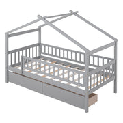 Twin Size House Bed With 2 Drawers - Gray