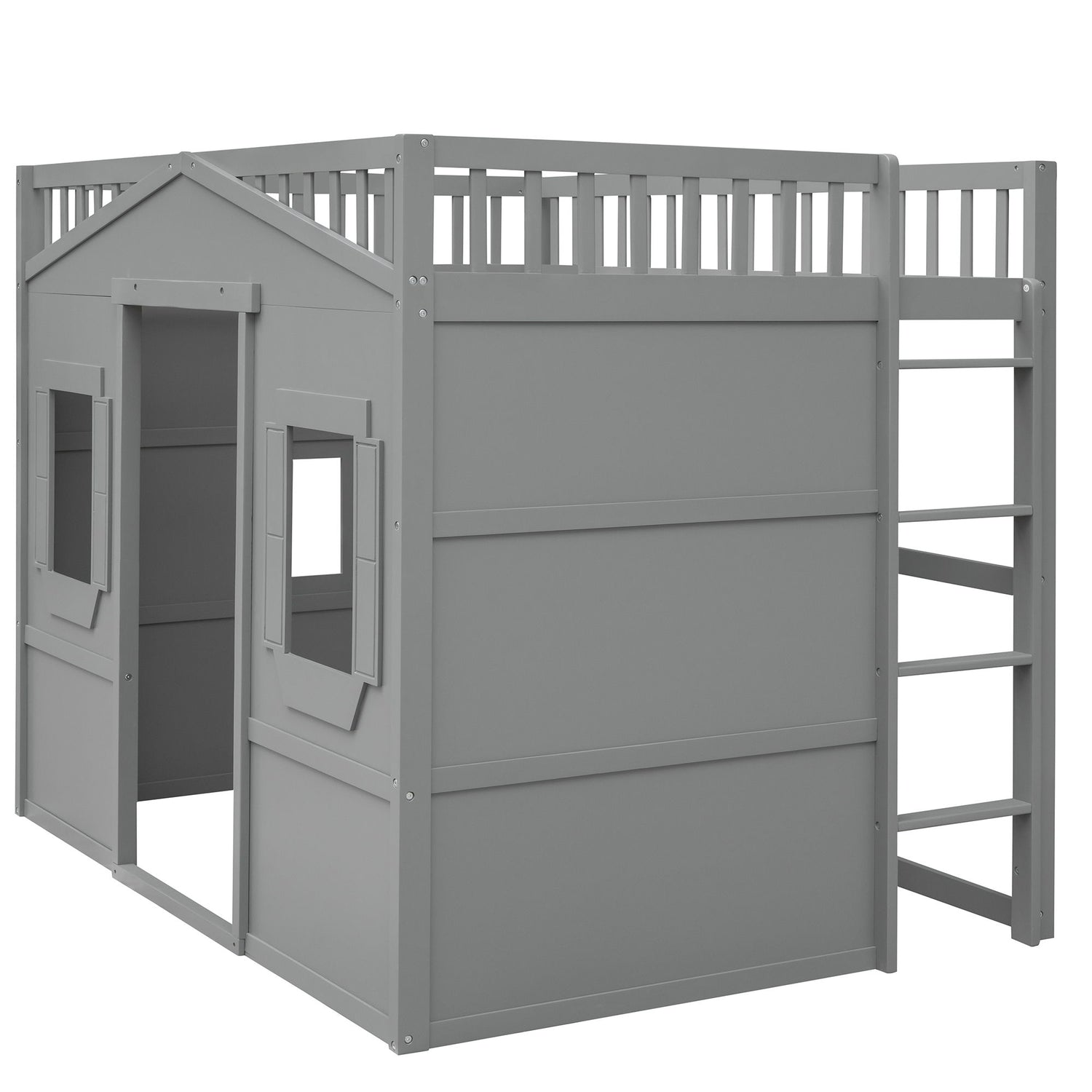 Full Size House Loft Bed With Ladder - Gray