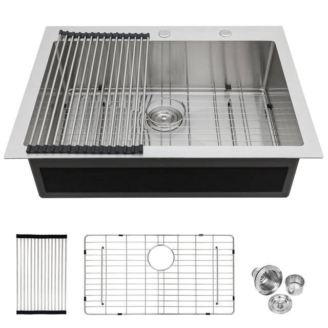 Kitchen Sink Drop In 16 Gauge Stainless Steel, Single Bowl Topmount - Black