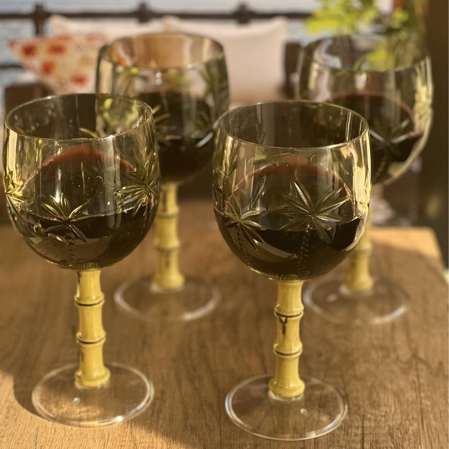 Leadingware Palm Tree Plastic Wine Glasses (Set of 4), Bpa Free Acrylic, Unbreakable, 16Oz - Clear