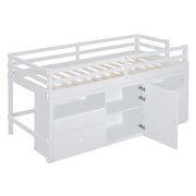 Twin Size Loft Bed With 4 Drawers, Underneath Cabinet And Shelves - White