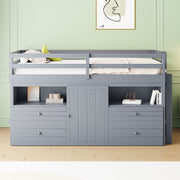 Twin Size Loft Bed With 4 Drawers, Underneath Cabinet And Shelves - Gray