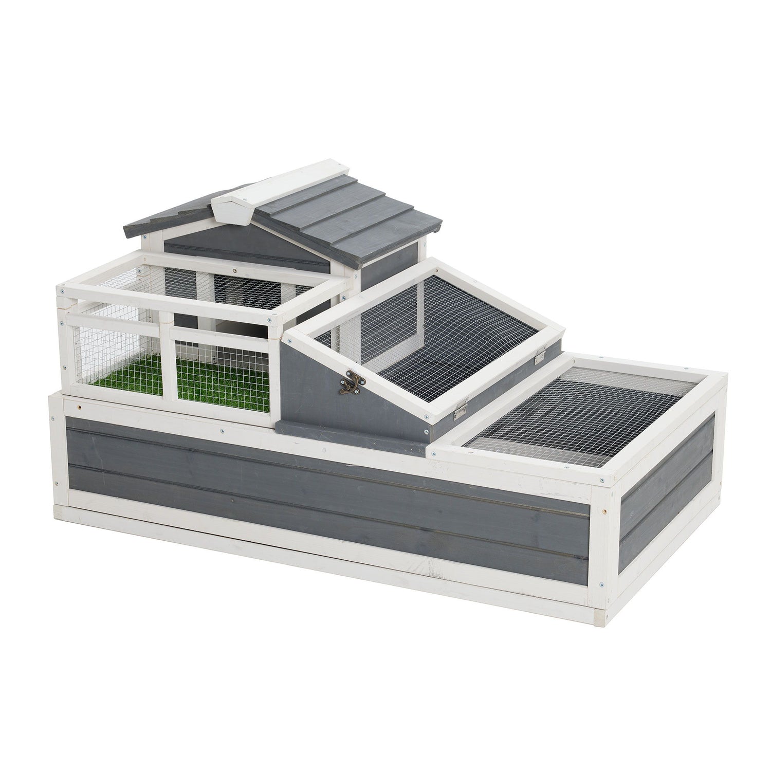 Luxury 3 Room Wooden Tortoise House Habitat With Turf Balcony & 2 Stories - Gray / White
