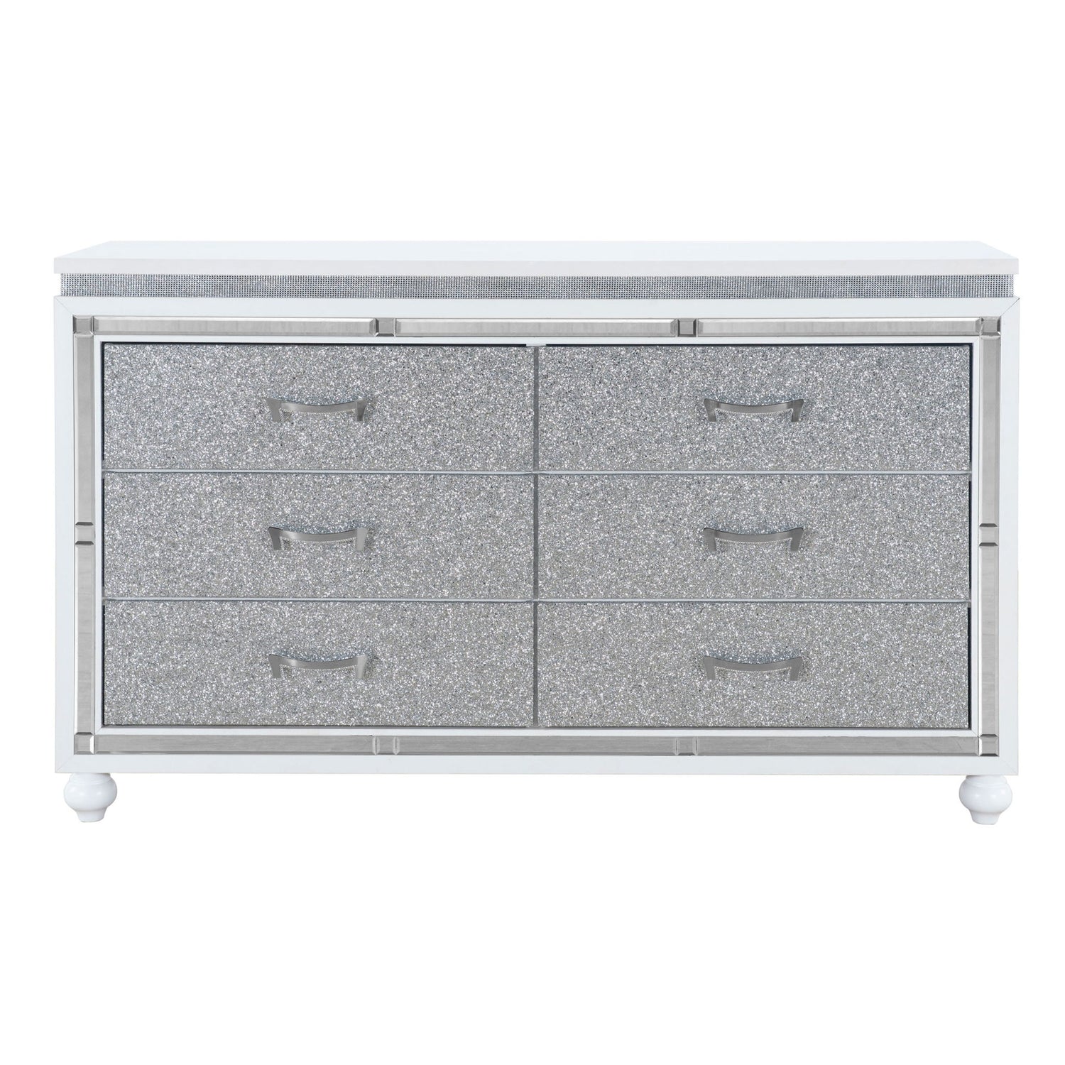 - Elegant Finish: White finish with glitter and mirrored accents for a sophisticated look.
