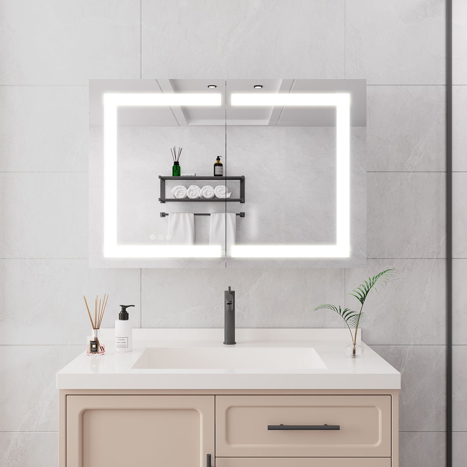 Medicine Cabinet With LED Vanity Mirror, Anti-Fog, Waterproof, Dimmable With Touch Switch