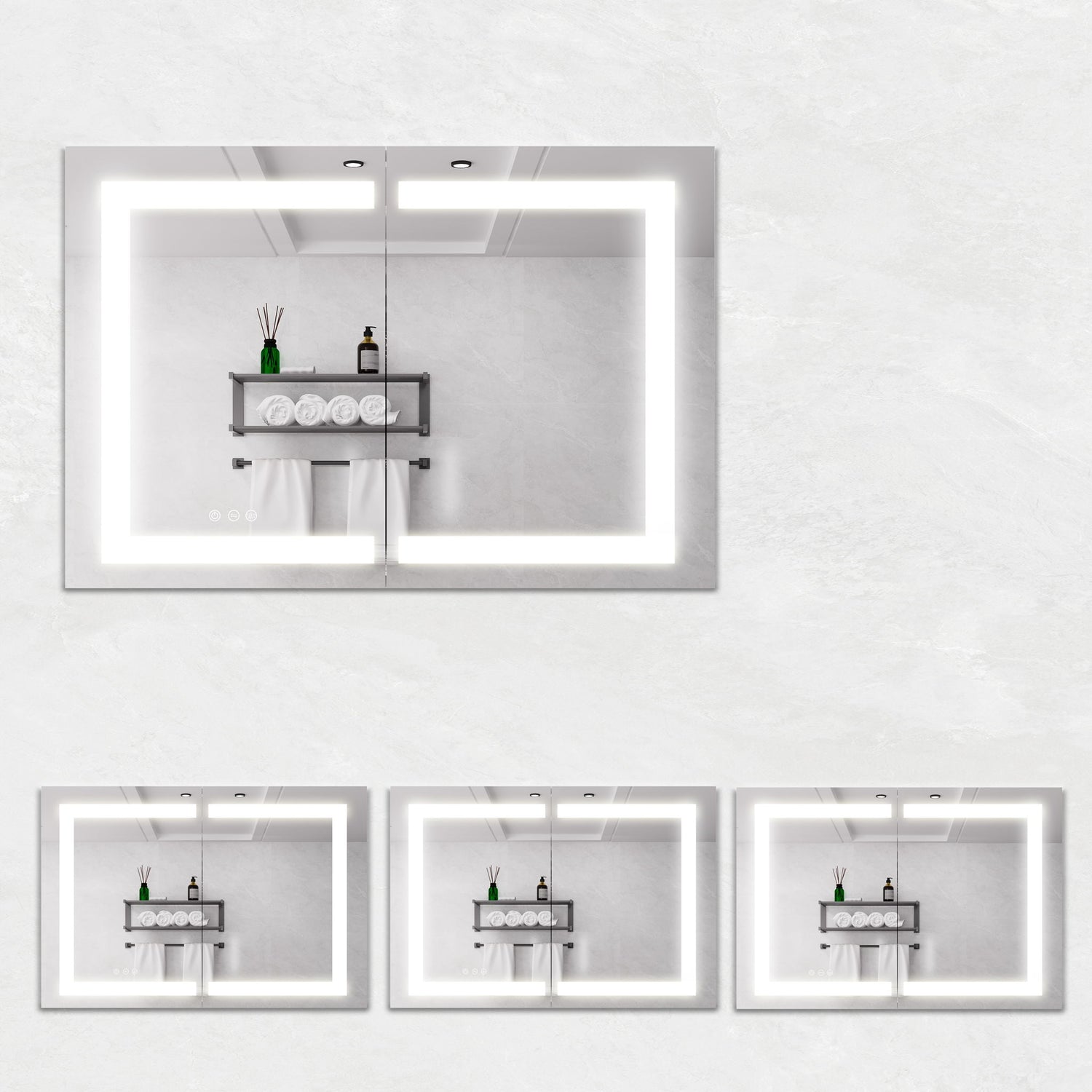 36" X 30" Medicine Cabinet With LED Vanity Mirror, Anti-Fog, Recessed Or Surface Mount, Waterproof, Dimmable, Aluminum 3000K~6000K Lighted Double Door Bathroom Cabinet With Touch Switch - Silver