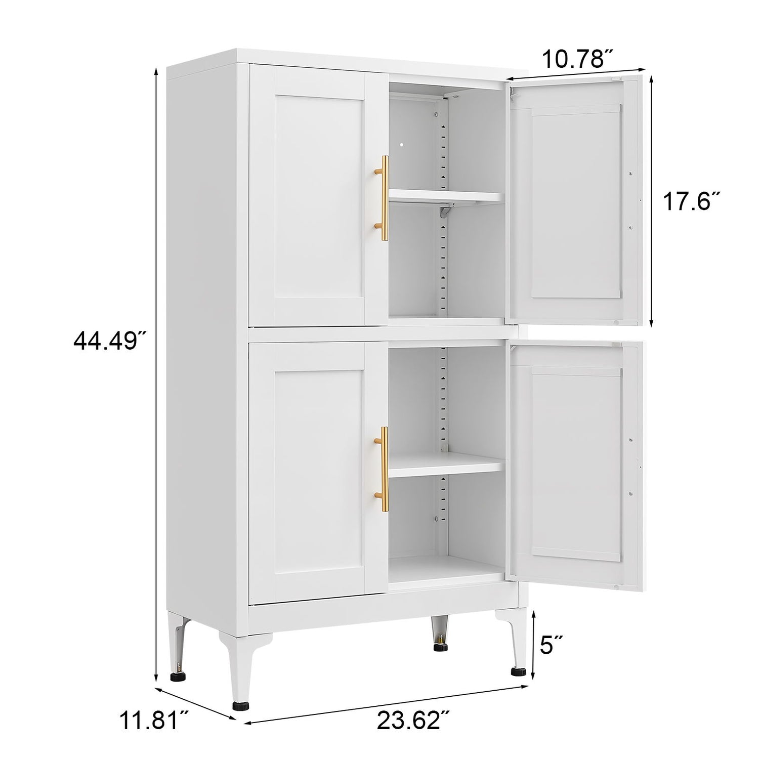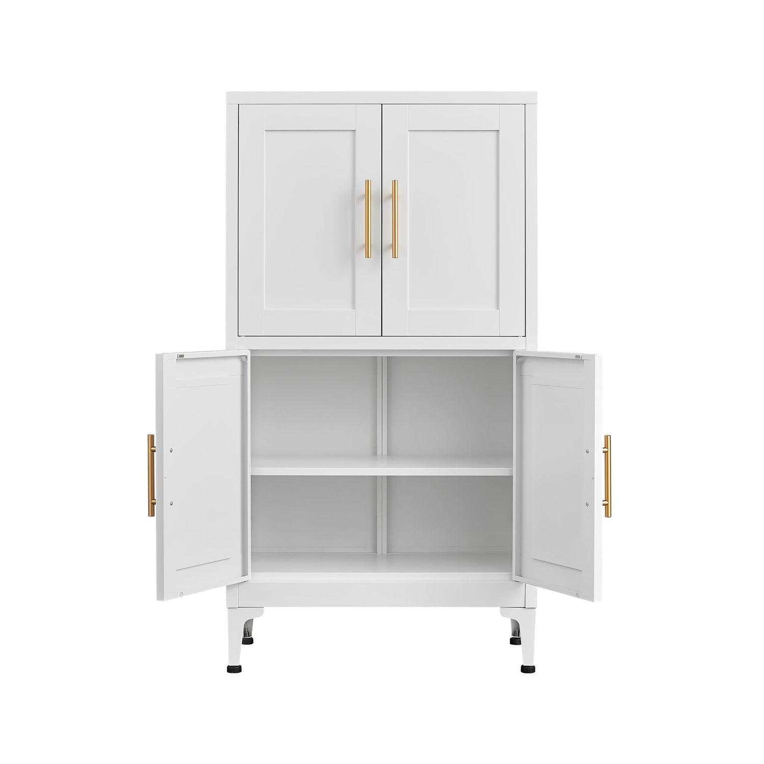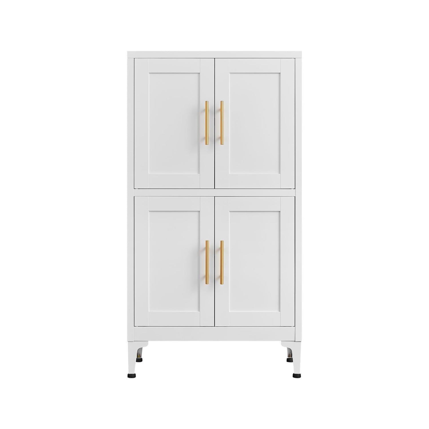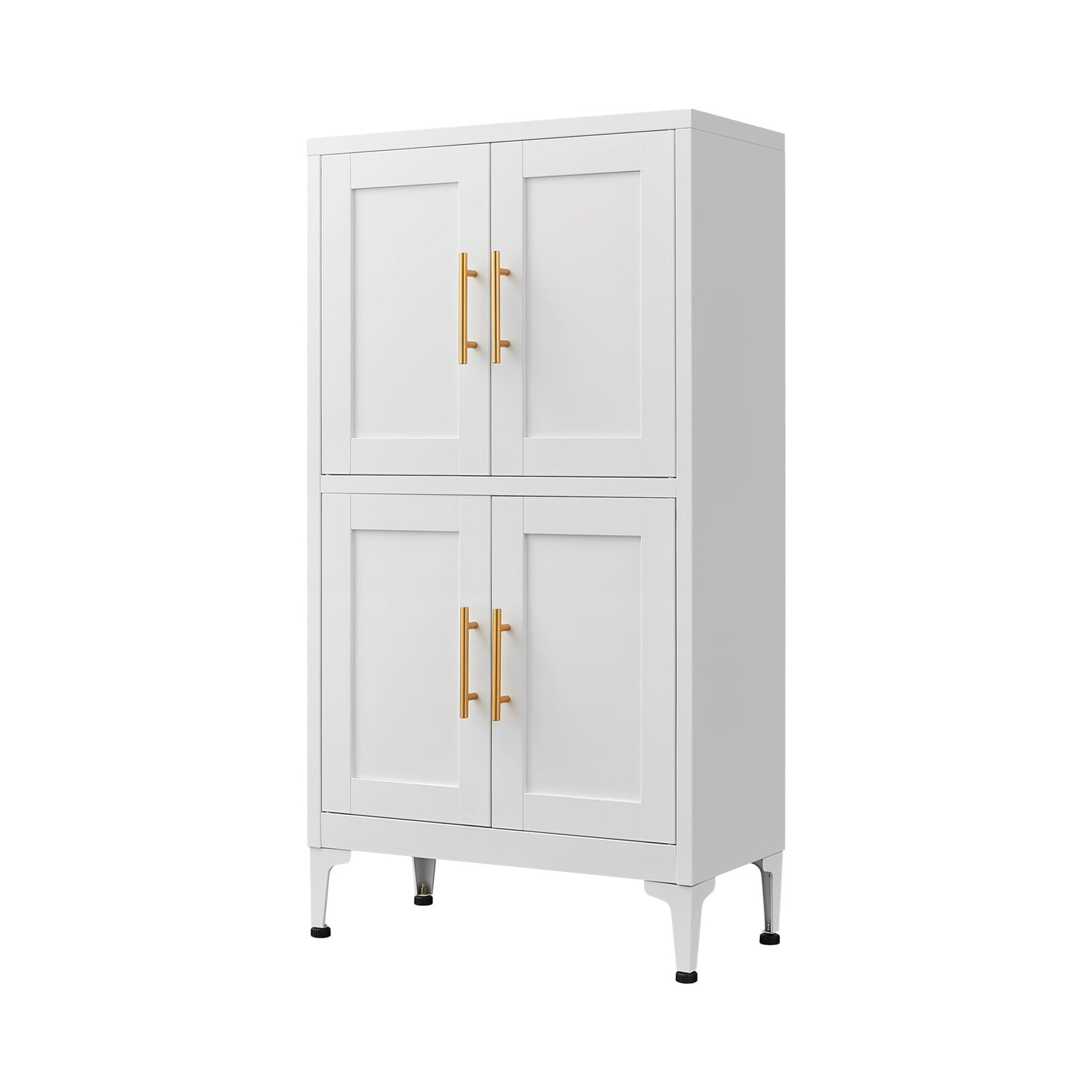 Metal Kitchen Storage Cabinet, Kitchen Pantry Storage Cabinet With Doors And Shelves, Storage Cabinet With Adjustable Leveling Foot For Kitchen, Living Room And Dining Room - White