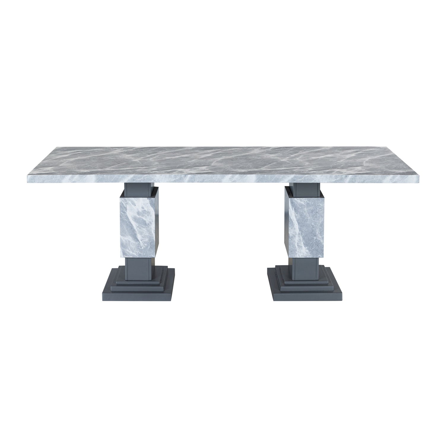 Michelle - Dining Table With Double Pedestal Marble Detailing - Gray