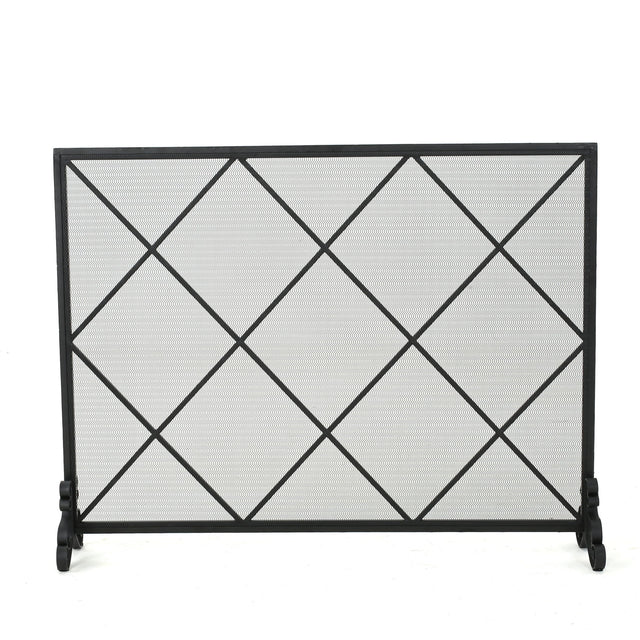 Minimalist Single Panel Iron Fireplace Screen With Diamond Design - Black
