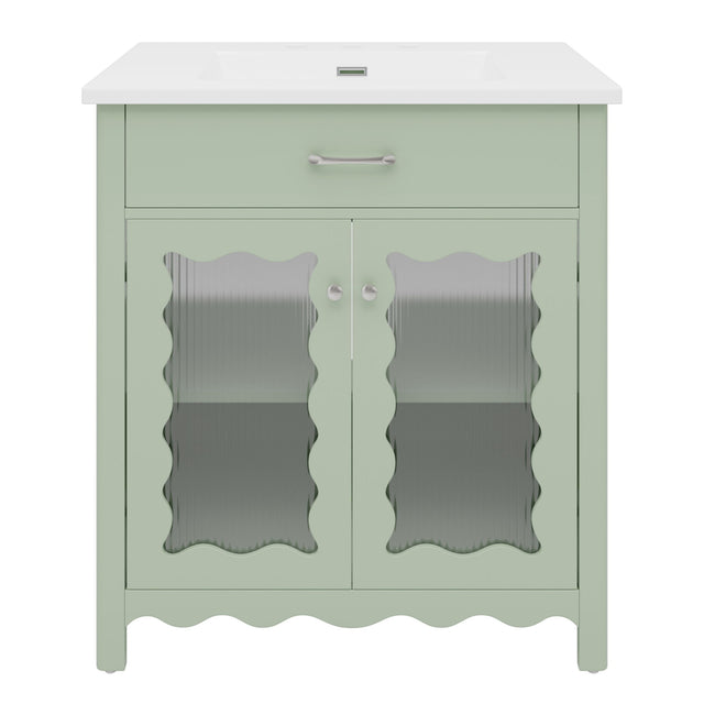 Bathroom Vanity With Glass Doors, Soft Close Hinges - Green