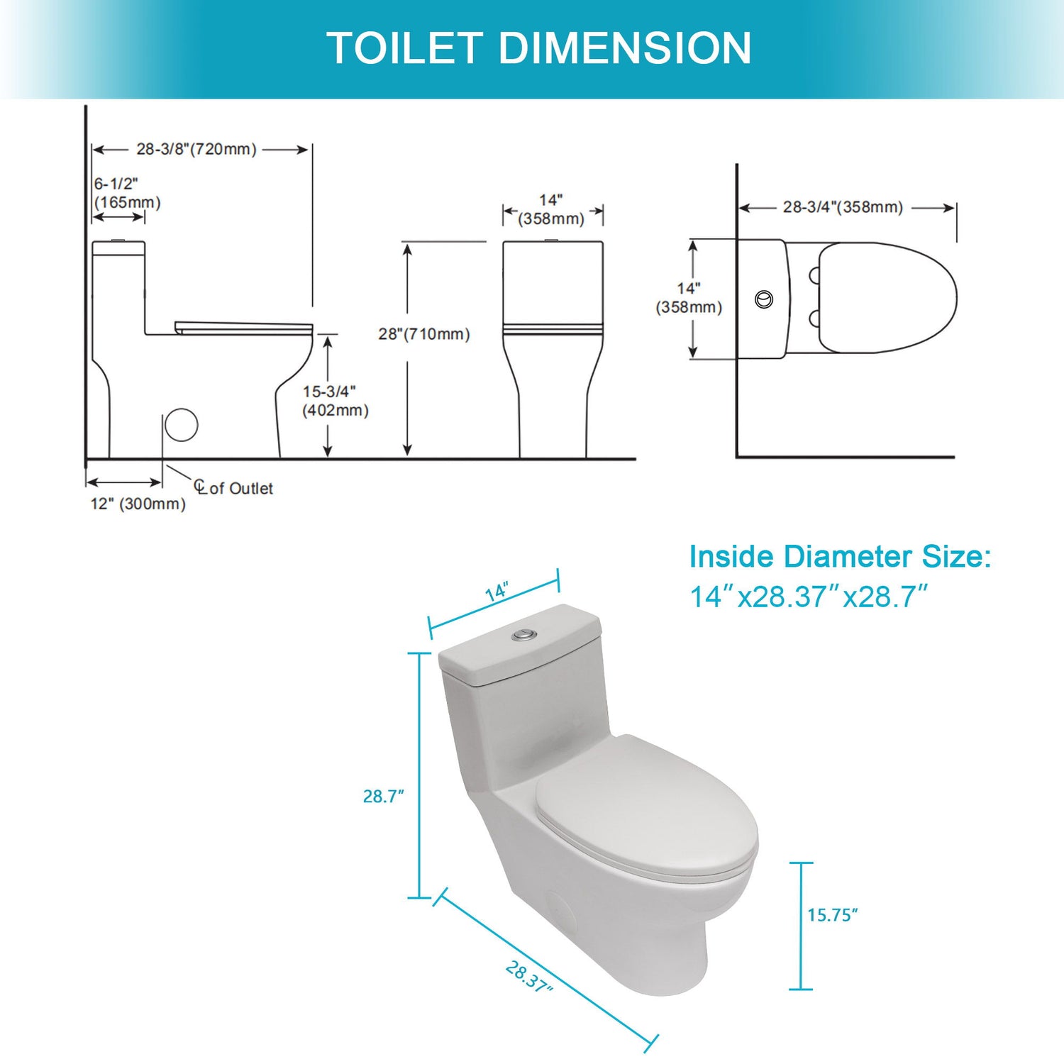 - Complete Package: Includes toilet, pre-installed soft closing seat, wax ring, floor bolts, and installation instructions.