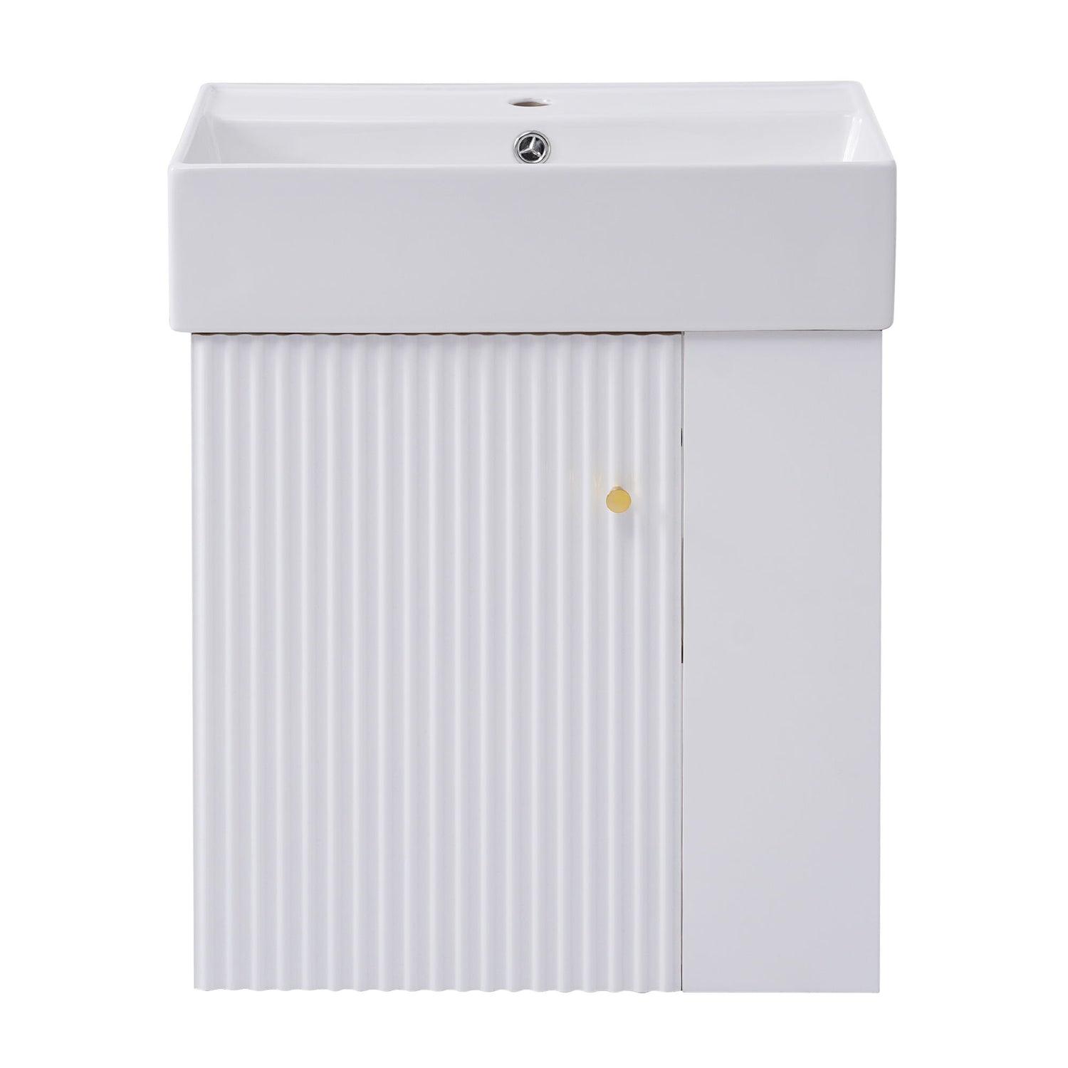 Modern Floating Bathroom Vanity With Ceramic Basin Perfect For Small Bathrooms, Right Side Storage - White