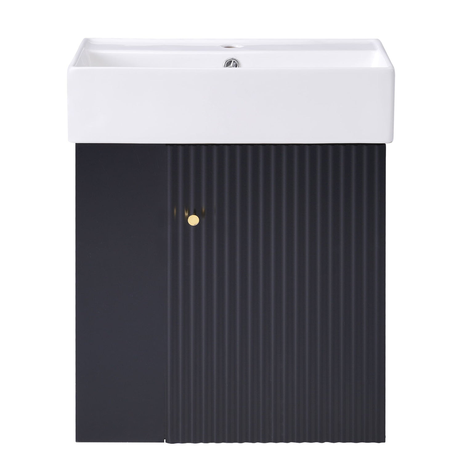 Modern Floating Bathroom Vanity With Ceramic Basin, Perfect For Small Bathrooms, Left Side Storage - Black