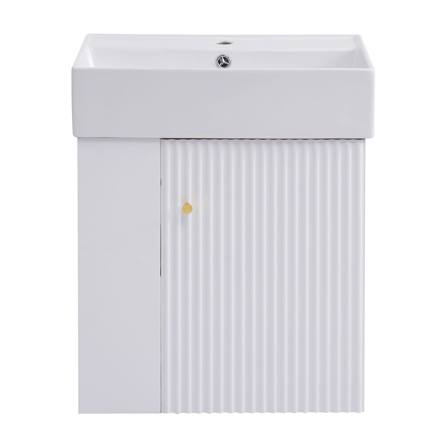 Modern Floating Bathroom Vanity With Ceramic Basin Perfect For Small Bathrooms, Left Side Storage - White