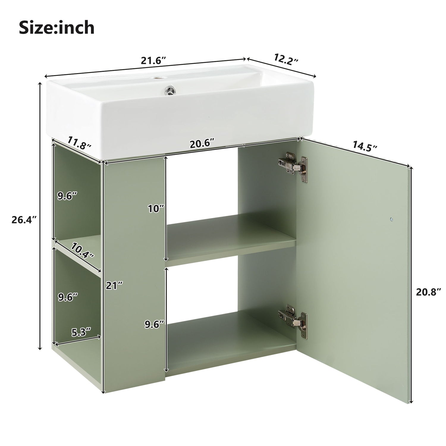 Modern Floating Bathroom Vanity With Ceramic Basin, Perfect For Small Bathrooms, Left Side Storage - Green