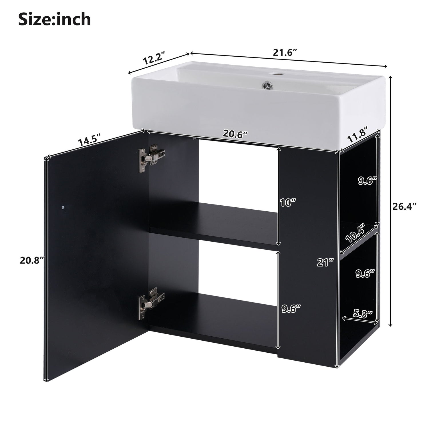 - Compact Dimensions: Measuring 21.6*12.2*26.4 inches, this vanity fits well in various space configurations.