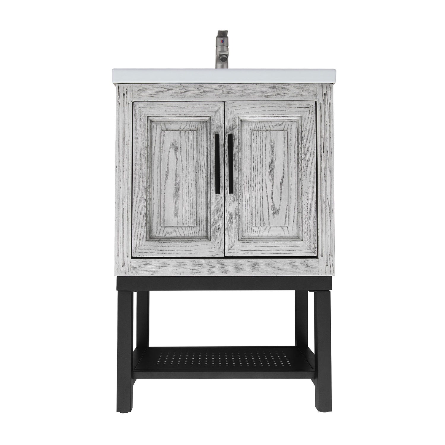 Modern Freestanding Bathroom Vanity With Ceramic Sink, Hot And Cold Faucet, Storage Cabinet & Open Shelf