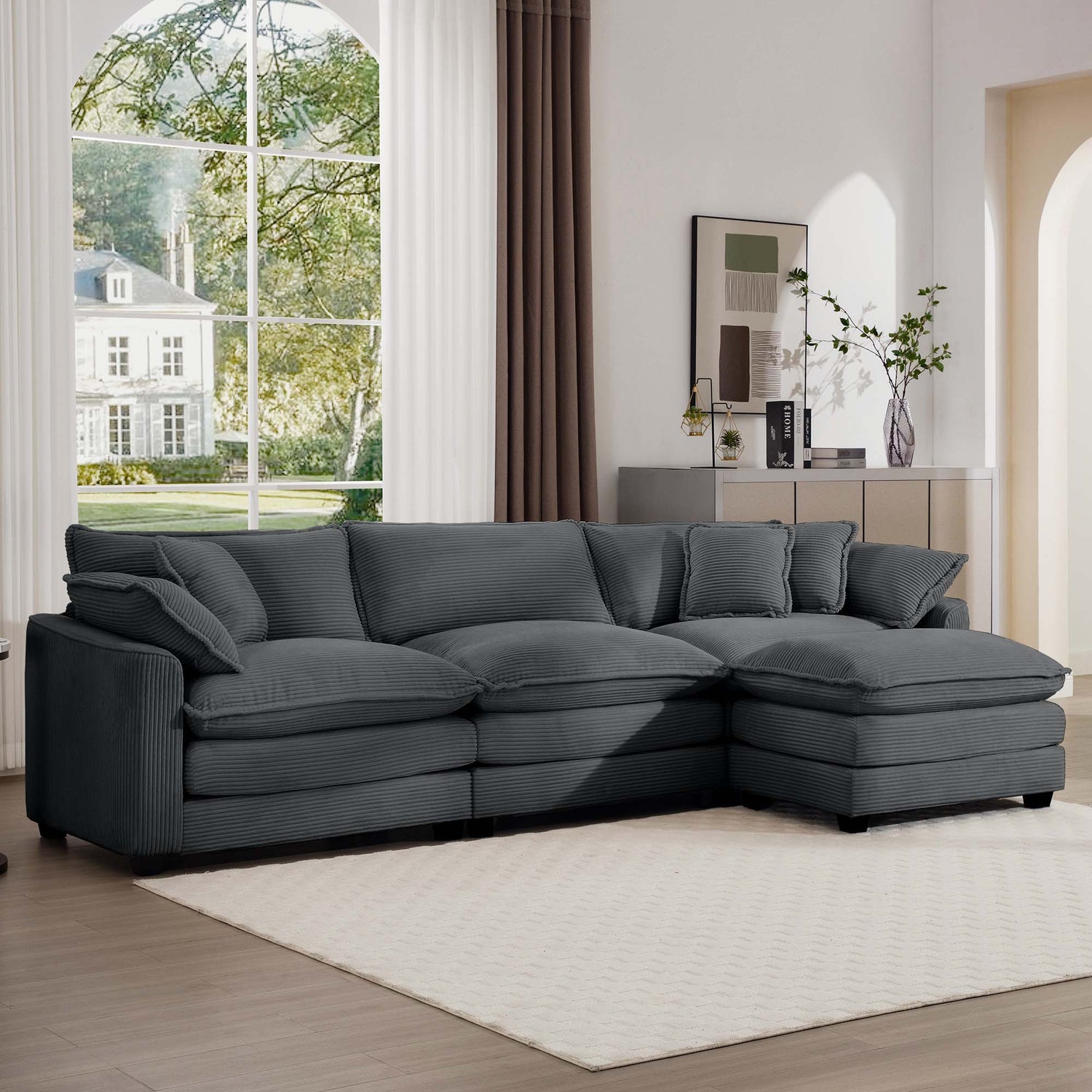 Modern Oversized Modular Cushion Sofa With Ottoman, Low Back, Deep Seating Sofa Set