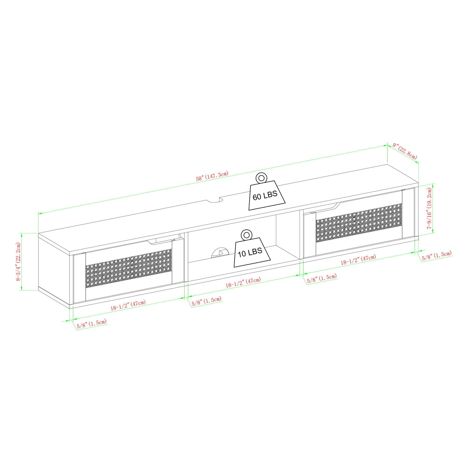 Modern Rattan Door Floating TV Stand For TVs Up To 65"