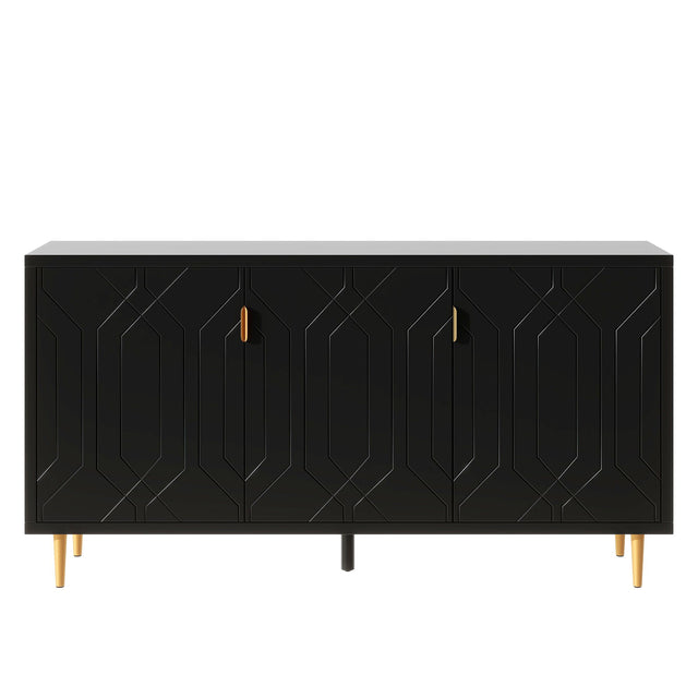 Modern TV Stand With 3 Doors And Adjustable Shelves For Living Room, Fits TVs Up To 70" - Black