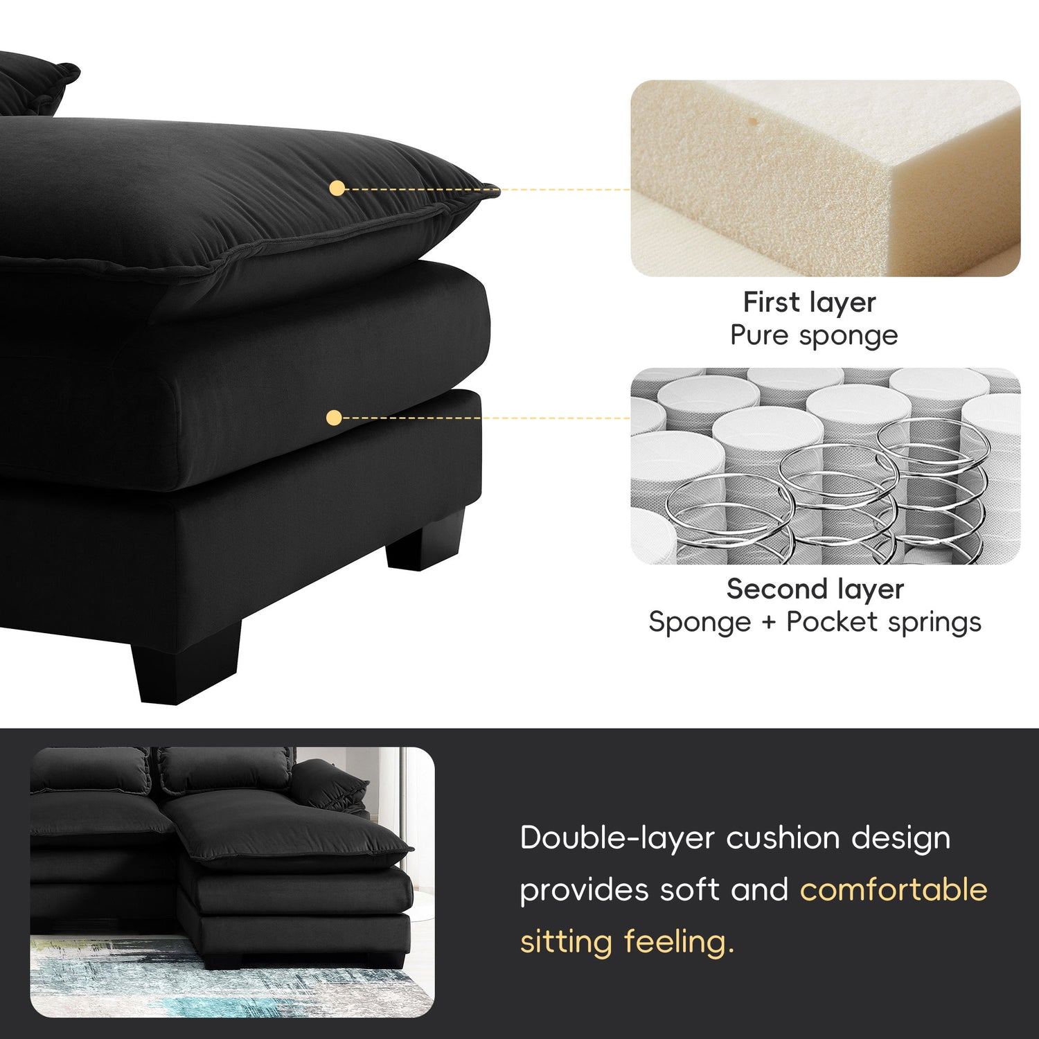 - 2 layer cushioning: Softer and more comfortable wrap-around feeling.The upper layer cushion is filled with pure high density foam for a softer feeling,the lower layer cushion is filled with pocket springs with high density foam for better support.