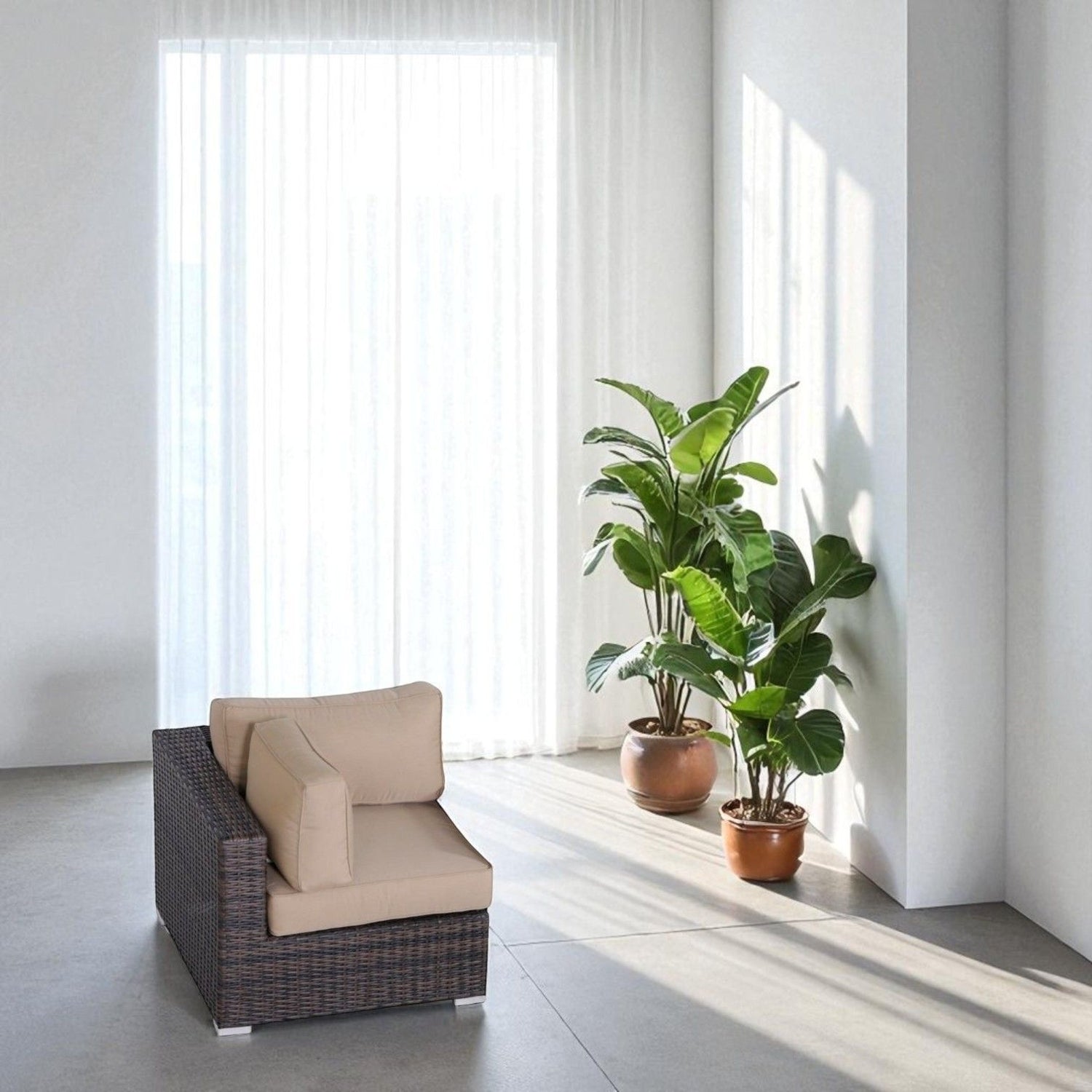 Outdoor 33" Wide Corner Wedge With Cushions - Beige / Brown