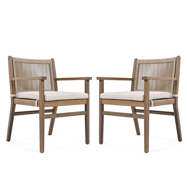 Outdoor Acacia Wood Patio Dining Armchair (Set of 2)