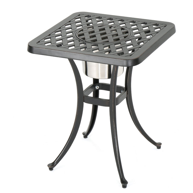 Outdoor Cast Aluminum Bistro Table With Ice Bucket - Black Copper