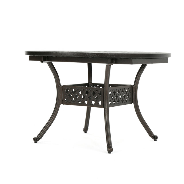 Outdoor Expandable Aluminum Dining Table, Hammered, Latticework Design - Bronze