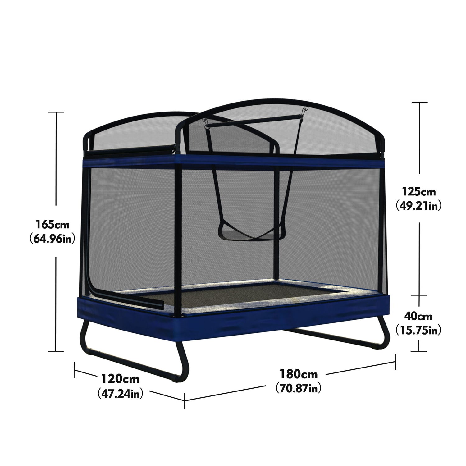 Outdoor Square Trampoline For Kids And Adults With Protective Net And Swing 4 X 6Ft - Black / Blue