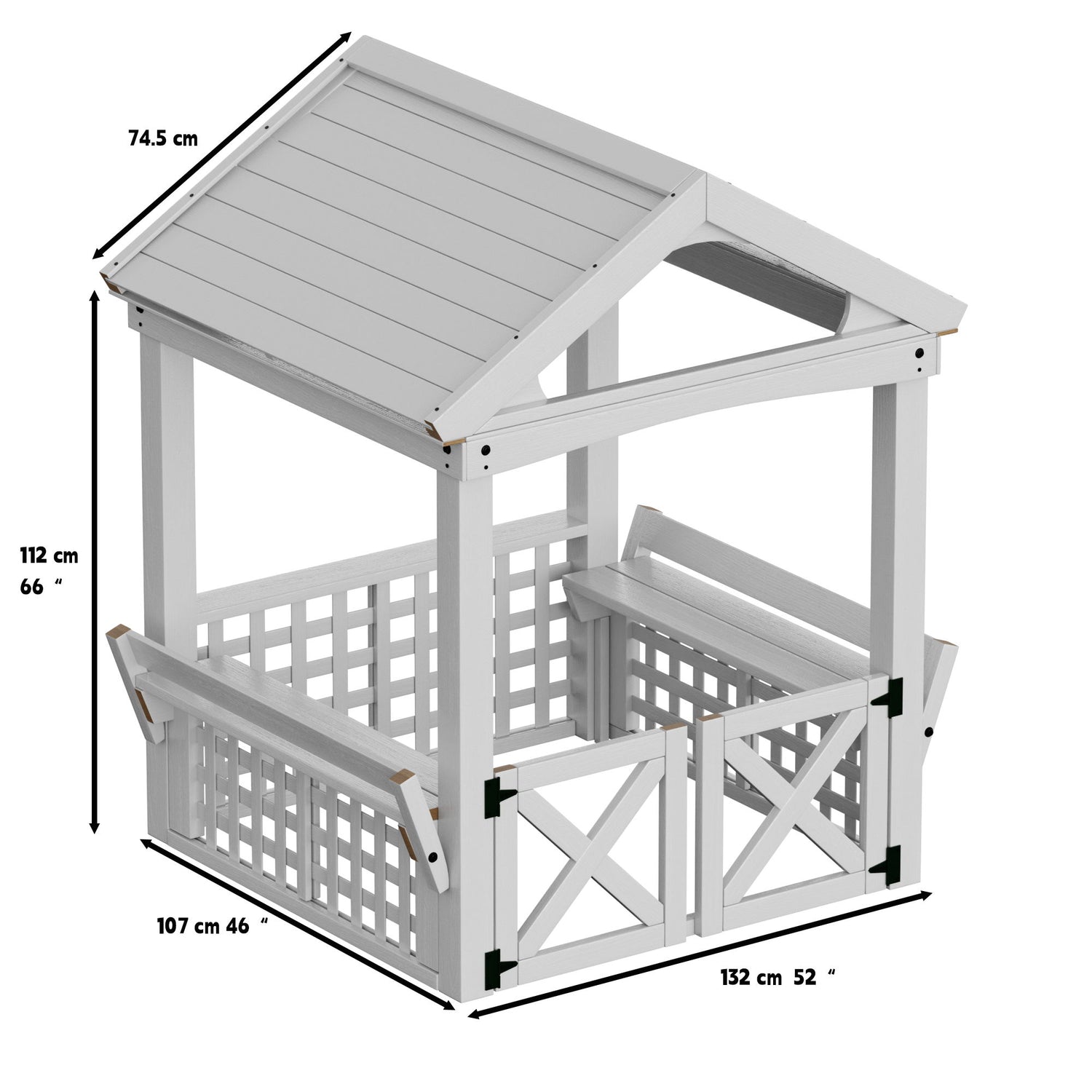 - Cute Built-In Bench And A Handy Roof - Just Like A Cottage, This Playhouse Features A Wooden Bench Where Kids Can Sit And Tell Stories. The Roof Means Your Little Ones Can Happily Play Outside, Even In The Rain.