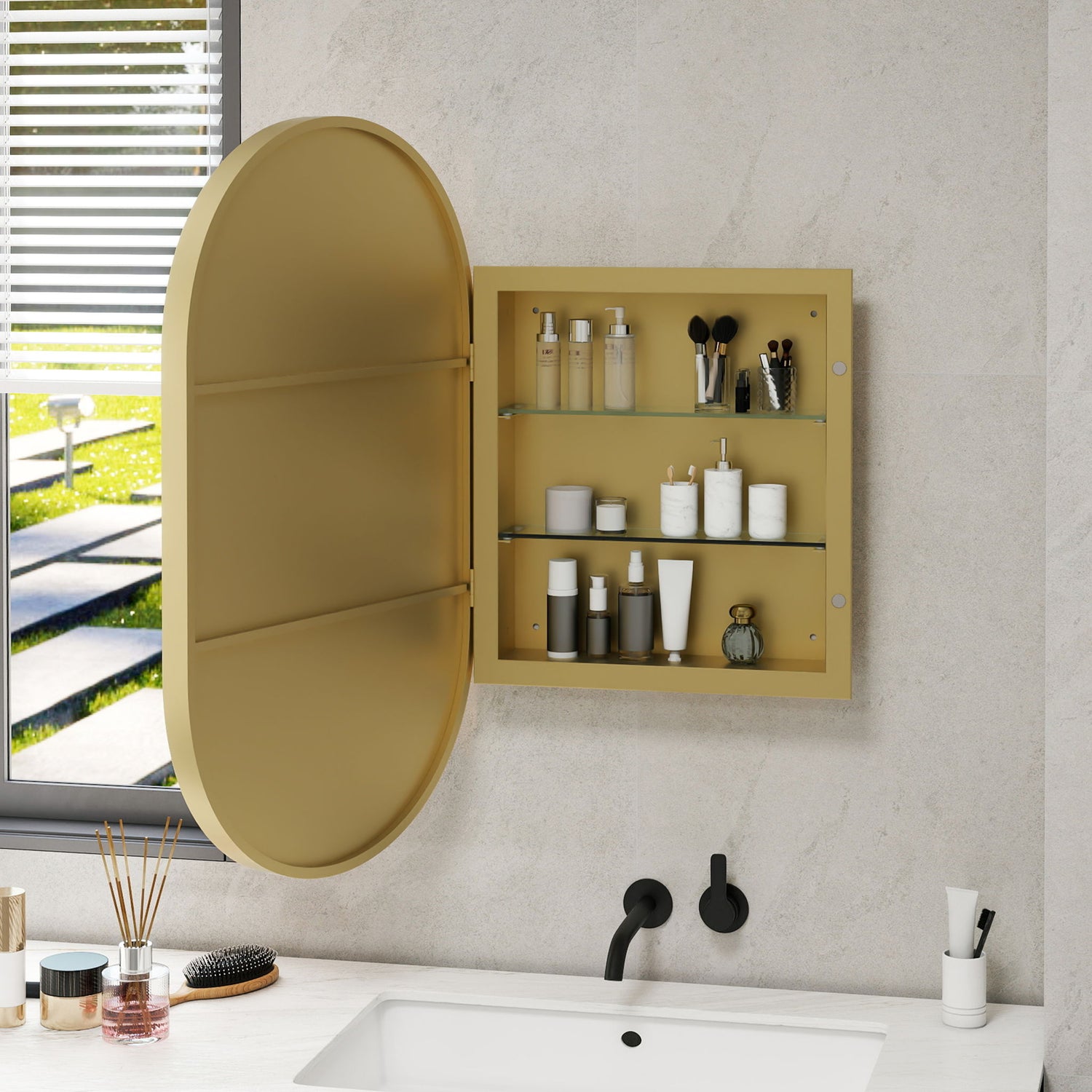 Oval Medicine Cabinet Mirror Bathroom Mirror With Storage Wall Mounted Medicine Mirror Cabinet With LED - Golden is backordered and will ship as soon as it is back in stock.